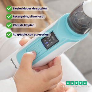 Extrae la mucosidad de forma suave y segura en segundos. Un dispositivo pequeño y práctico que aporta un gran alivio al bienestar de tu bebé.