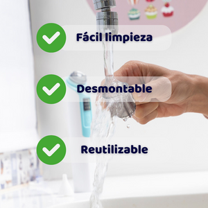 El cabezal desmontable y lavable permite una limpieza rápida y sencilla. Con filtros reutilizables, garantizas la máxima seguridad e higiene en cada uso.